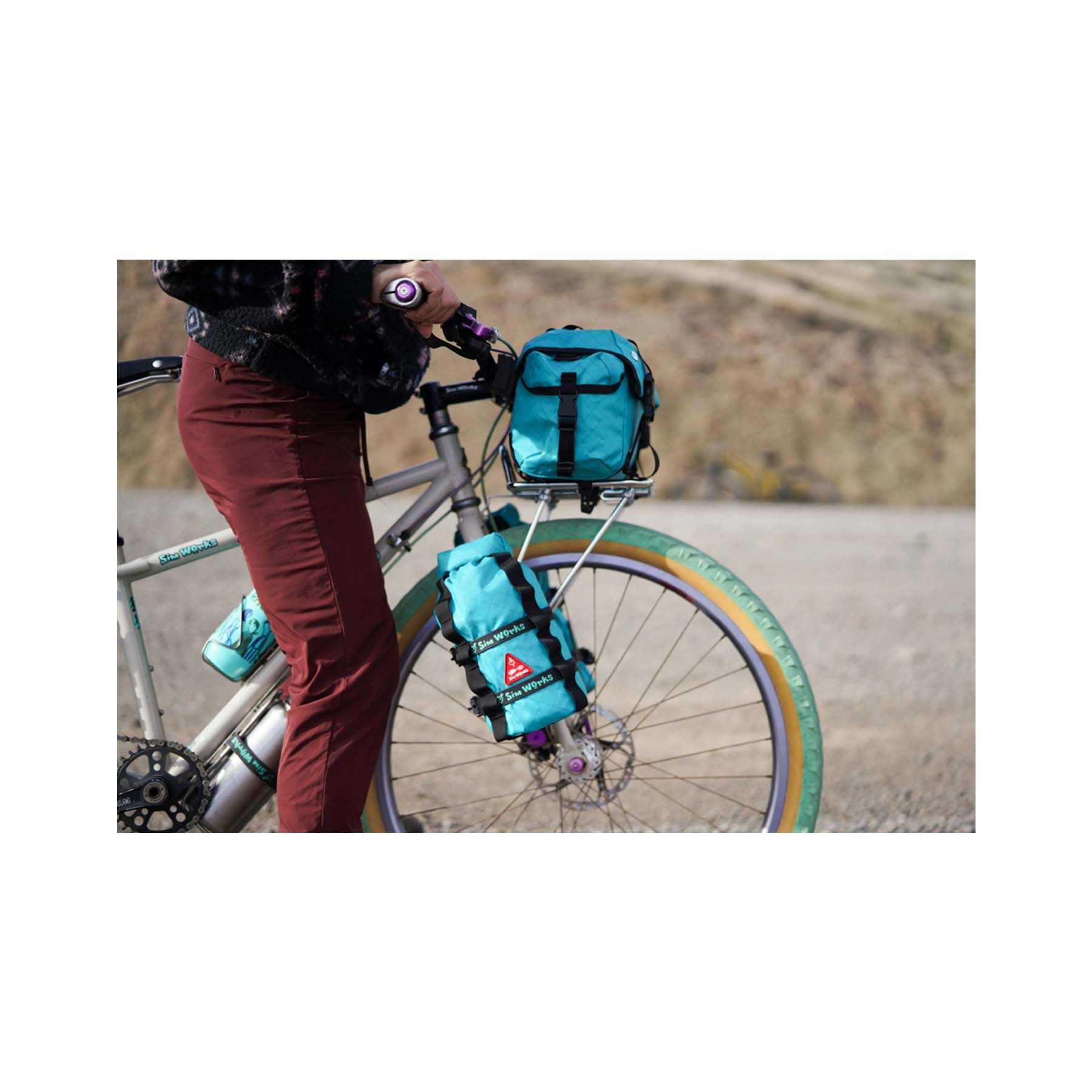A Durable stuff-sac style bag can find endless uses for cyclotourists both on and off-road. The Sim Loader Cohiba Roll-ups are a simple but practical way to add some capacity to your touring rig by mounting them to a cargo cage on your fork blades or to an accessory mount on a front or rear rack. Nylon webbing daisy chains sewn to the front of the bags along with a broad nylon strap sewn across the bottom of the bags make securing them a breeze (retention straps not included).